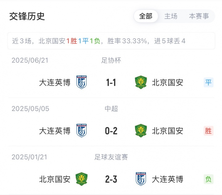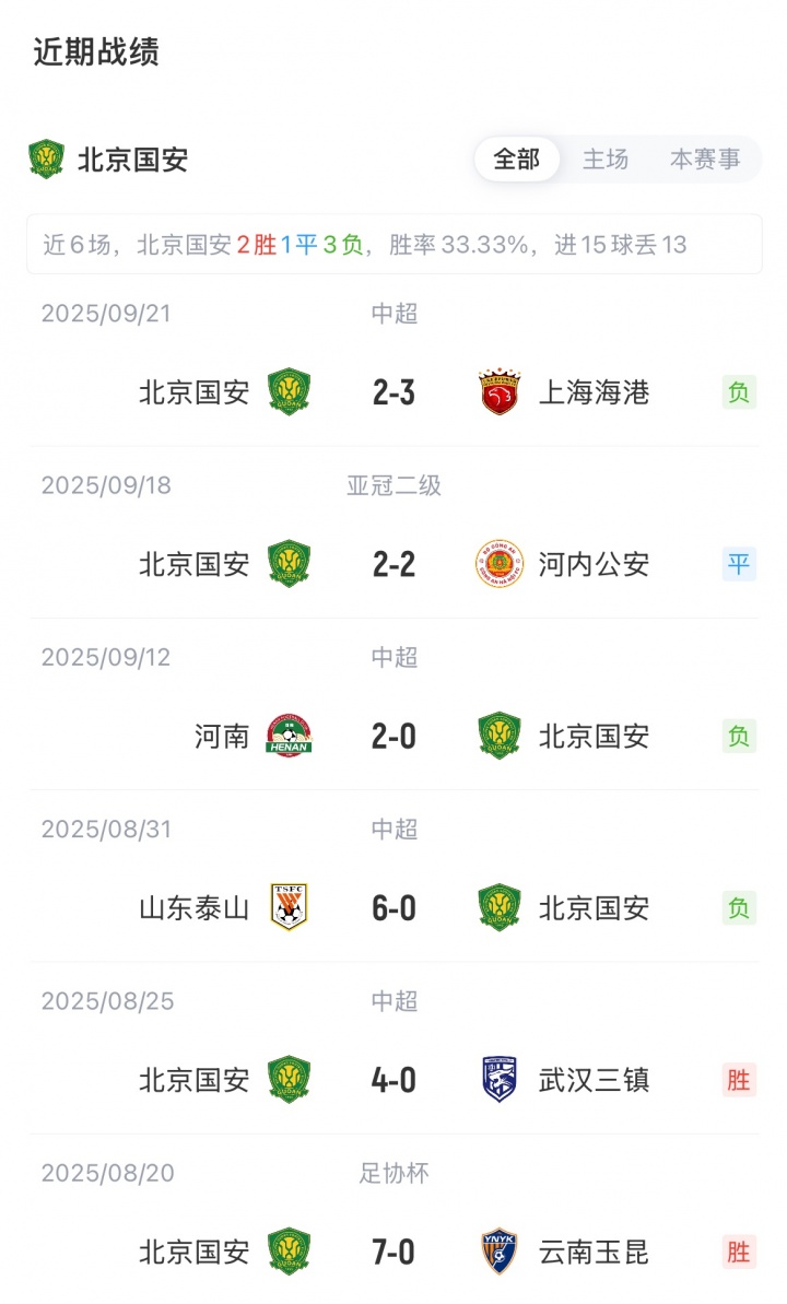 国安此前遭遇中超三连败,48分排名积分榜第四,落后榜首6分;英博33分排名第8。
