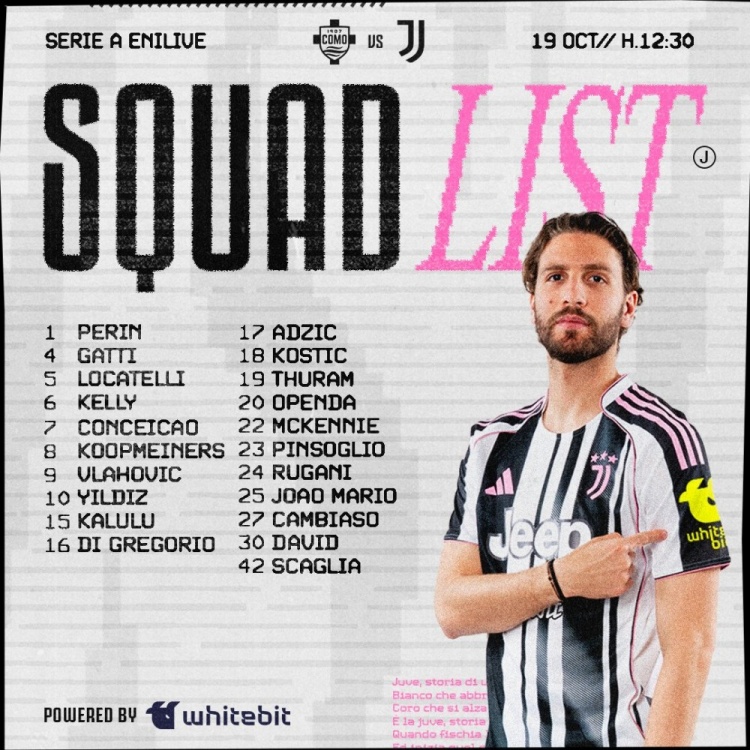 尤文客战科莫大名单:弗拉霍维奇领衔锋线,伊尔迪兹戴维在列