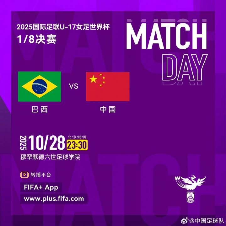 世界杯赛 1/8总决赛 !U17女足vs巴西杆位:周欣怡、宋语先发