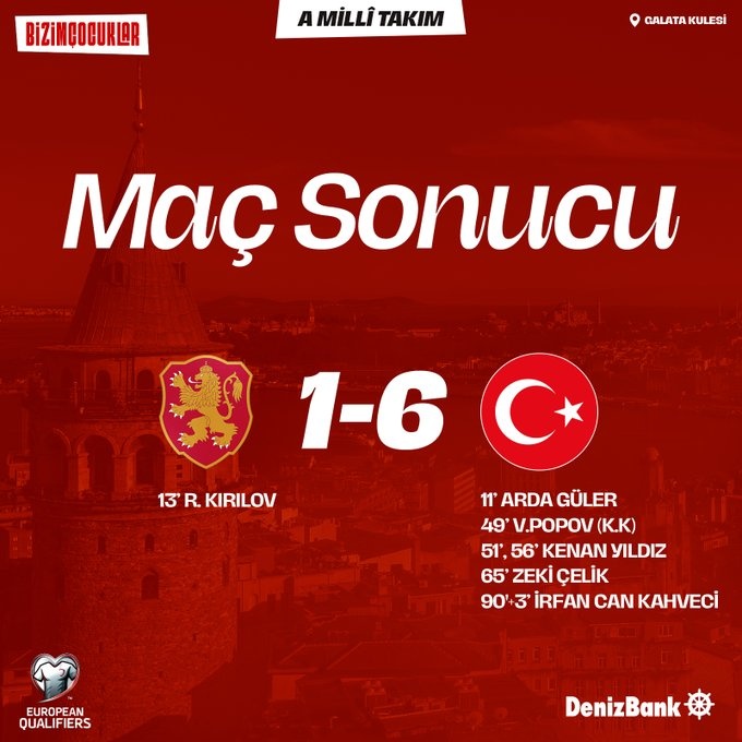 世预赛-土耳其6-1大胜保加利亚,伊尔迪兹梅开二度、居莱尔传射