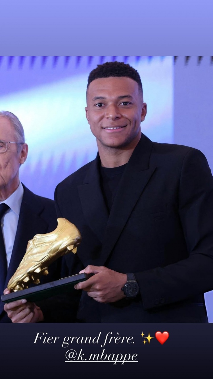 榜样!伊桑-姆巴佩祝贺哥哥领取欧洲金靴奖:为你骄傲