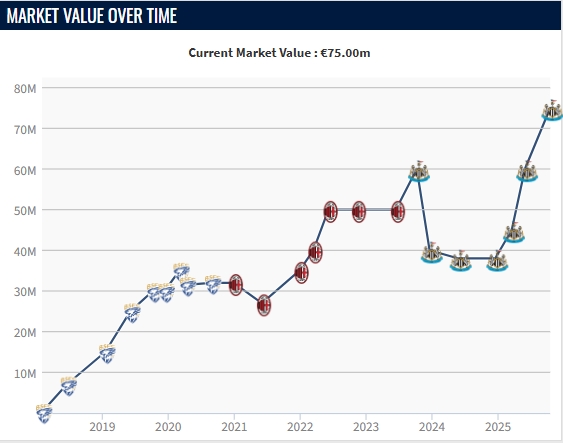 今夏以5500万欧转会费加盟曼城的赖因德斯,身价上涨1000万至7000万欧。