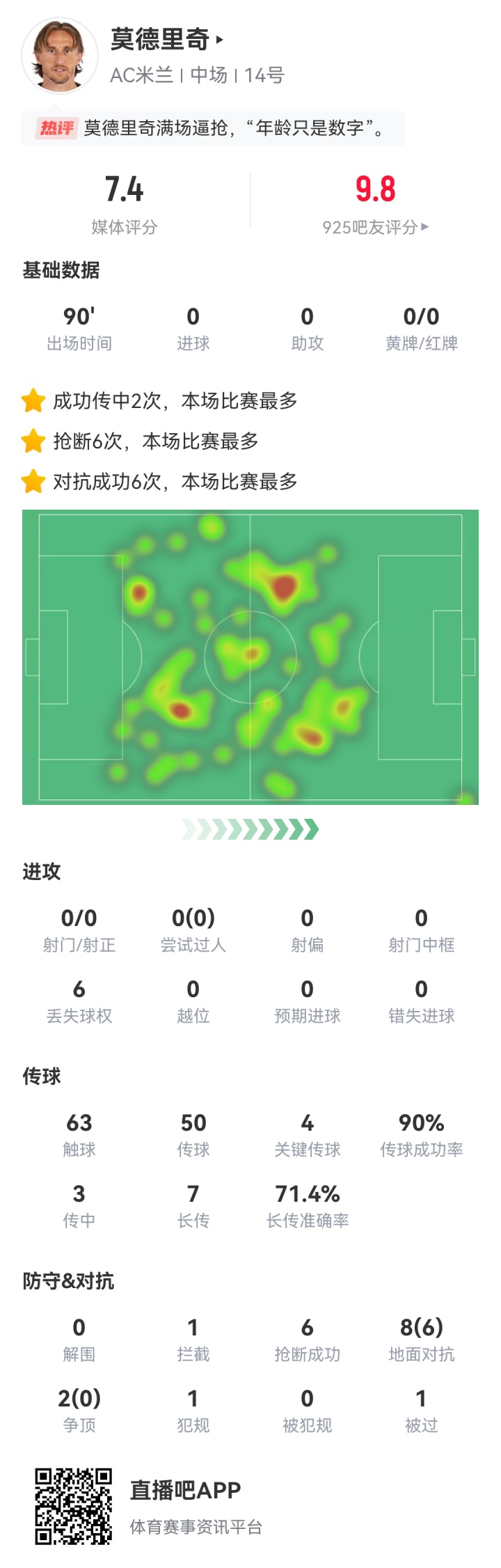 神奇数据!莫德里奇对紫百合吃到在意甲首次违例 ,前540分钟0违例