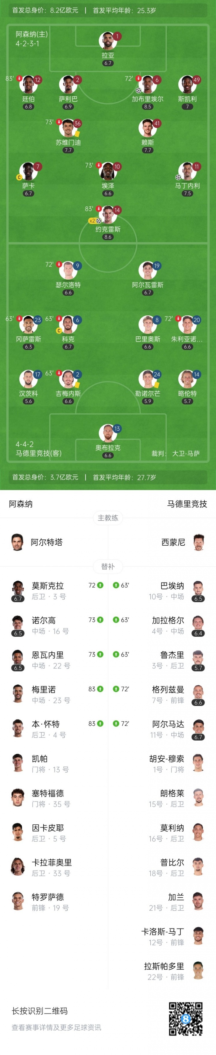 10月22日讯 马竞本轮0-4遭阿森纳横扫,西蒙尼在第63分钟做了一次连换3人的调整,巴埃纳、加拉格尔、鲁杰里上场,英超直播在线高清(无插件)换下吉梅内斯、冈萨雷斯和科克。