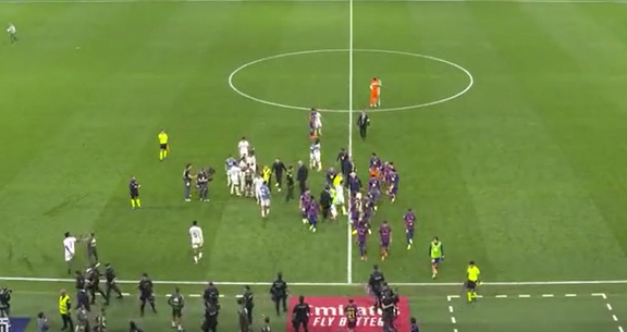 形成反差!皇萨球员“团战”刚结束,什琴斯尼与库尔图瓦友好拥抱