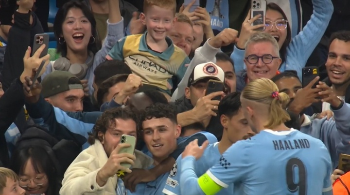 太子就是帅!福登庆祝时被球迷搂着自拍,还看了镜头笑的特别协作