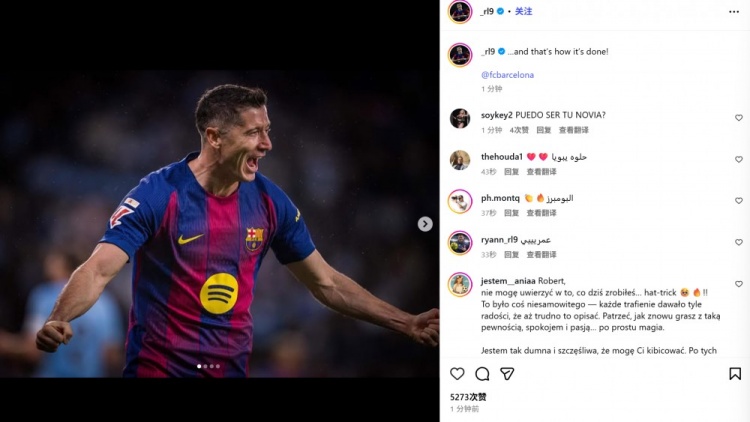 他也在赛后通过社媒晒出自己的庆祝照并配文:"……就是这么做的@巴塞罗那古代足球 俱乐部"。