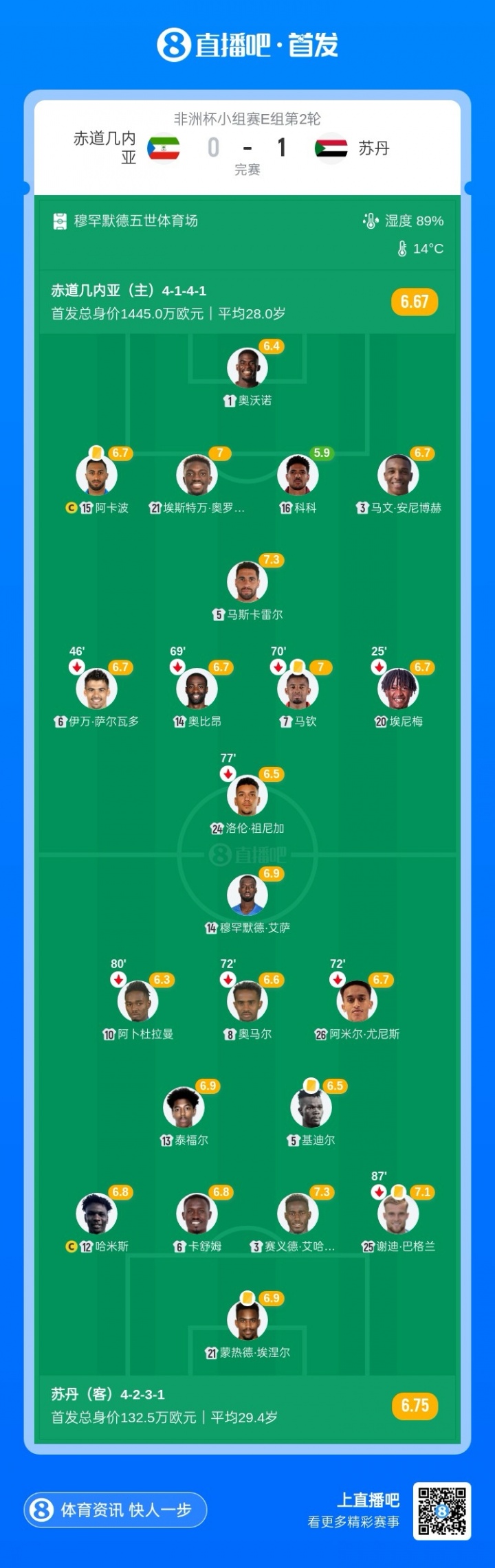 这是一场不折不扣的大冷门,赤道几内亚杆位身价1445万欧,英超直播在线高清(无插件)苏丹杆位身价132.5万欧。