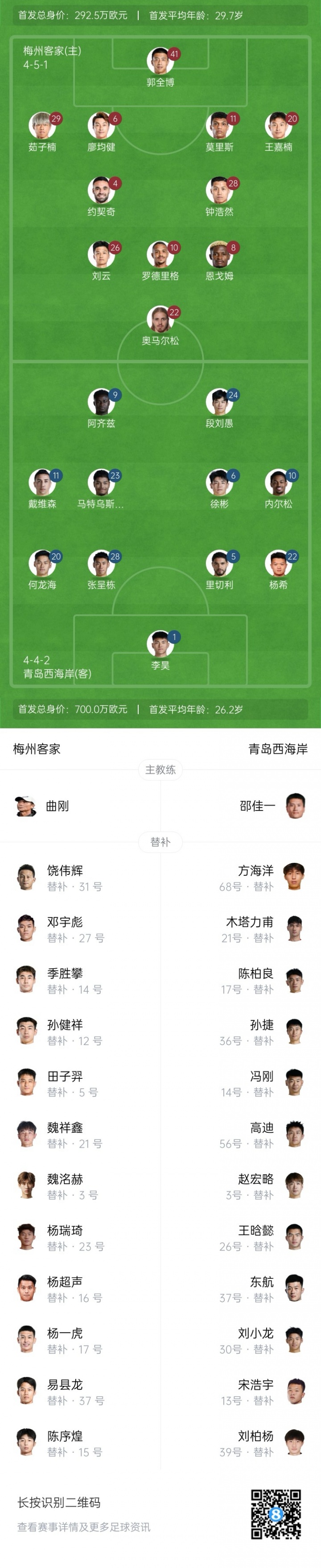 梅州vs西海岸首发:恩戈姆、罗德里格先发,徐彬、杨希出战