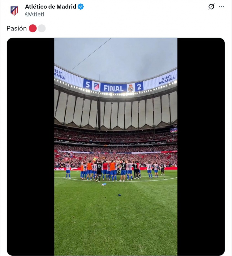 全场沸腾!马竞官推放出该队5-2击败皇马后庆祝的视频