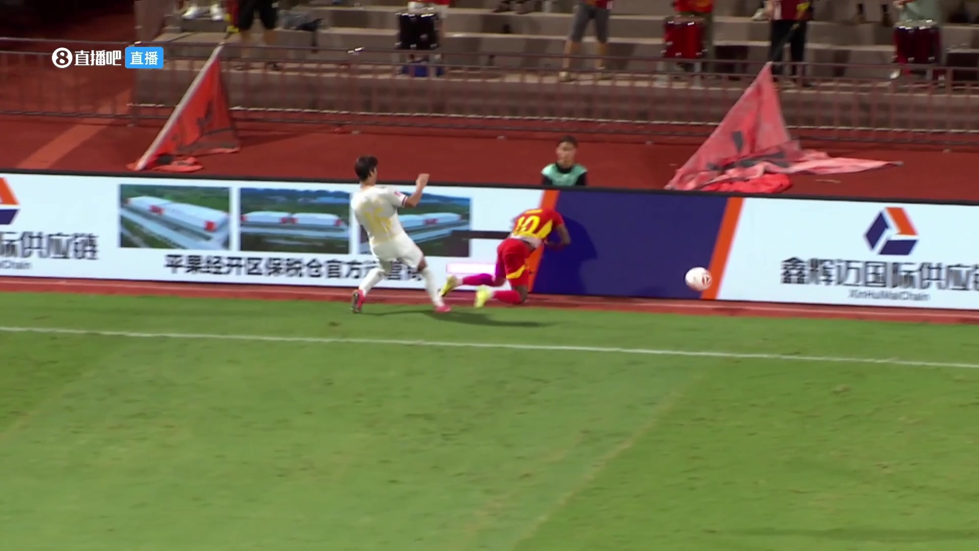 中甲联赛第25轮,广西平果 VS 重庆铜梁龙,比赛第50分钟,重庆铜梁龙16号队员(张志雄)在边线附近对广西平果10号队员(阿萨莫阿)犯规,后者与场外LED广告展示设备接触后倒地,后被救护车送往医院。裁判员判重庆铜梁龙16号犯规并出示黄牌警告,英超直播VAR未介入。