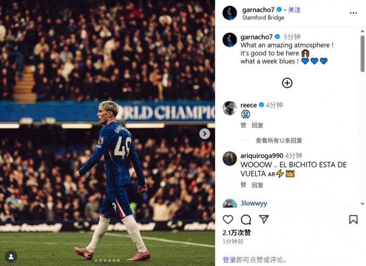 10月5日讯 加纳乔更新社媒,庆祝切尔西本轮击败利物浦。