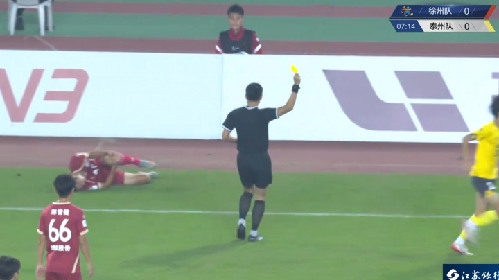 比赛进行到第8分钟,英超直播马宁就向犯规的泰州队队员出示了一张黄牌。
