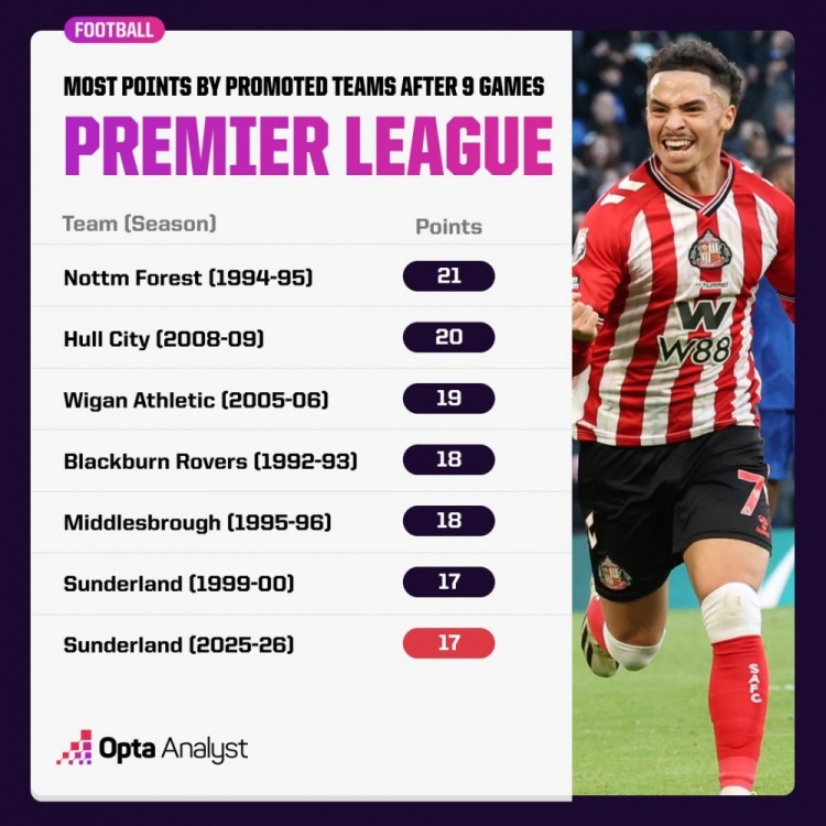 不过,俱乐部高层的一系列运作以及球队上下一心的努力,推翻了人们的刻板印象。9 轮战罢,在阿森纳稳居榜首、曼市双雄回归正轨、红蓝双军虽有起伏但积分稳固的情况下,桑德兰与他们处在同一梯队,5 胜 2 平 2 负积 17 分的成绩,绝非 “昙花一现” 所能概括。