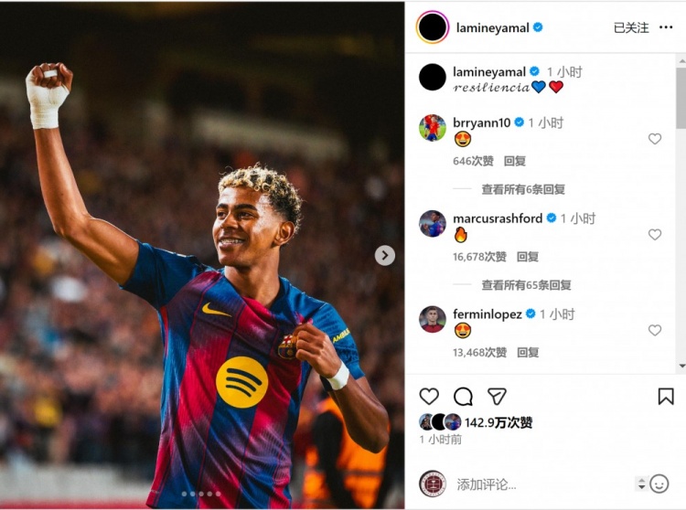 本赛季9场4球5助!亚马尔社媒庆祝胜利:坚韧